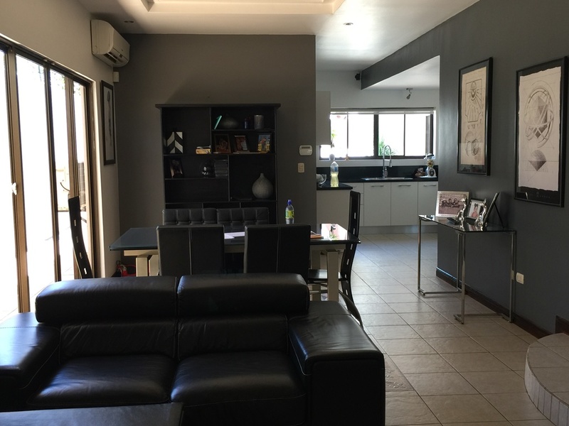 Beautiful, Spacious House in Pozos, Santa Ana. In a secured residence, contemporary style, big rooms, it has 2 levels. 3 bedrooms, 2.5 bathrooms, office, tv room, kitchen, enclosed garage for 2 cars. Alarm and cctv system. This beautiful and comfortable house is located in a residential complex with surveillance 24/7, controlled access, perimeter walls with electric fence for safety to ensure your peace of mind. Wide streets, 3 parks within the residential area. Excellent for your family's comfort.