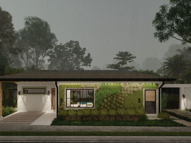 The open floor plan in the living room and kitchen offers indoor/outdoor living space with views of garden and pool. Floor-to-ceiling glass sliders open up to a teak patio shaded by a wooden pergola. The master bedroom glass sliding doors open up to its own private patio, facing the pool. High-end finishes are featured throughout the home. The community offers green zones as well as a children's park. This is an amazing opportunity to purchase at pre-construction prices!