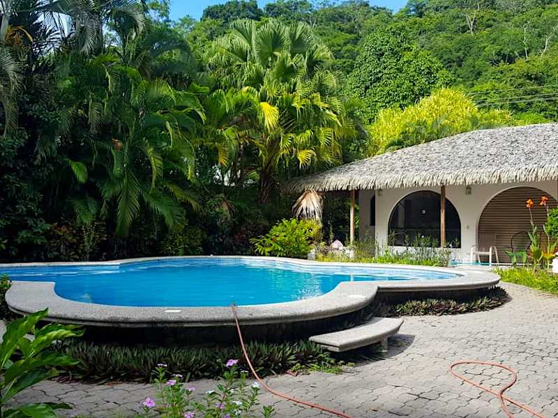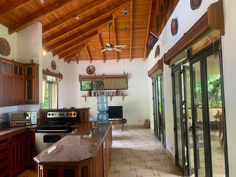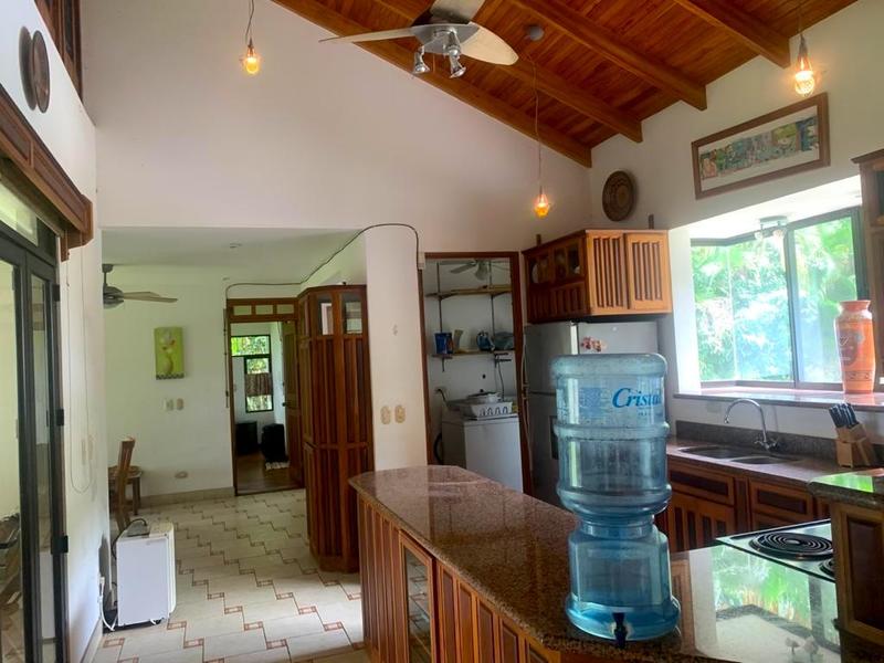 This stunning home is located on a titled lot just steps from the picturesque Tambor Beach on the Nicoya Peninsula. This unique home was built in 2005 by the renowned Costa Rican architect, Juan Rodriguez Bonilla. With a classic Costa Rican feel and elegant decor, this home was built with attention to detail and luxury living in mind. The 3-Bedroom, 2.5-Bathroom home features a custom made kitchen that includes hand-carved “Purple Heart” and Cedar cabinets. From the kitchen, both the dining and main living areas flow into an exceptional outdoor patio that boasts breathtaking vistas of the ocean and intricately landscaped front garden.