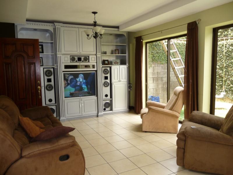 Casa de 2 Plantas en Residencial en Tres Rios. First Floor: Dining room, kitchen with wooden furniture with imitation granite, laundry room, back garden, guest bathroom, covered garage with electric gate for 2 vehicles. Second Floor: 3 bedrooms, the main one with balcony or office, with closet with complete bathroom, 2 secondary bedrooms with closet with shared complete bathroom. It is handled safely with street guards. Security fee 20,000 colones, pets are accepted.