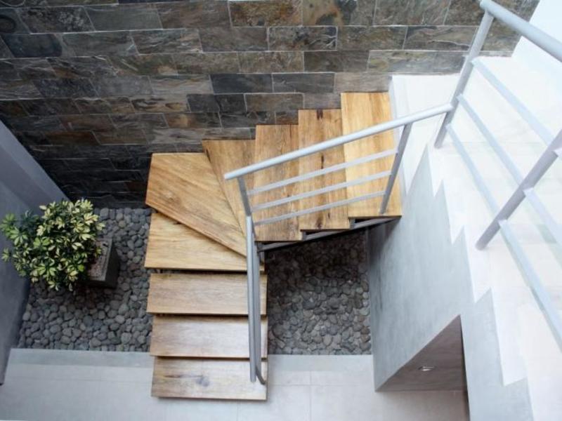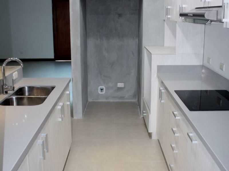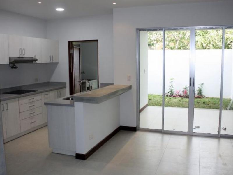 Casa Contemporánea de Dos Plantas en Tres Ríos First floor: Large dining room, terrace, guest bathroom, kitchen with wooden furniture and granite countertops. Closet-cellar in the garage area, electromechanical facilities for the service bedroom. Second floor: TV room, Master bedroom with walking closet with full bathroom, two secondary rooms with closet sharing full bathroom. Water-repellent melanin furniture in bathrooms (for humidity). Back garden and internal garden that extends under steps (risers are in glass that allows you to see the garden from the living room). Laundry area, parking lots with grass block with green area on the sides, fine finishes, contemporary design, laminate floors in bedrooms, double height towards internal patio, 60x60 porcelain tile in social areas and circulation. Residential with 24/7 security with controlled access, security fee 15,000 colones, pets are accepted. Excellent location, close to schools, shopping centers, public transport.