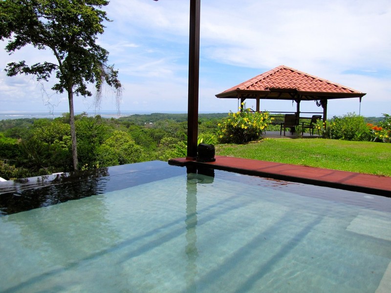 When you reach the front gates to Palmvita you drive up a paved entrance road that takes you through this exclusive property until you arrive at the estate home that overlooks the Palmvita Development. This luxurious, tropical, open concept 3-bedroom home has over 3,900 ft² of incredible living space, a large 700 ft² 2-tierd infinity pool, a 380 ft² roof top terrace and a small rancho overlooking the valley. This beautiful home has been constructed on the top ridge of a superb 10,000 m² parcel providing unparalleled views of the ocean, the Uvita whales tail and the majestic mountains that rise in the background behind this estate home. The home allows for a very comfortable living experience offering wide open areas to accommodate any size family and comes completely furnished.