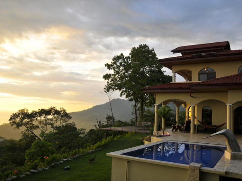 above Uvita in the neighborhood of Bejuco, this well built home features a partially paved turn