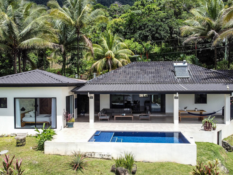 This modern and elegant luxury home is located on San Josecito Rd, 10 minutes from Uvita, and all the stunning beaches of Costa Ballena. Located on an easy access road that is currently being paved!