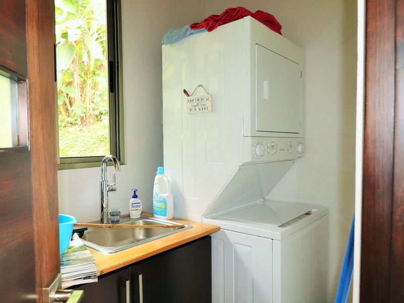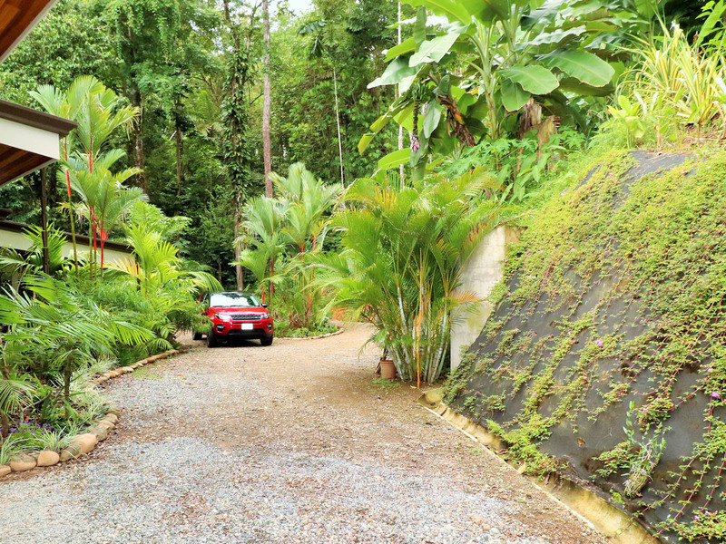 The home is just a 5-minute drive to Uvita and only about 2 kilometers to the highway, much of it paved. The home is at 1100 foot elevation for milder temperatures and tropical breezes to keep you’re A/C bills low. When you are ready to go to the beach, you are just minutes to Playa Hermosa, one of the best beaches in the area. The home receives water legally from the local ASADA that is incredibly clean and delicious right from the tap. The yard includes professional landscaping and garden trails leading to your very own creek.