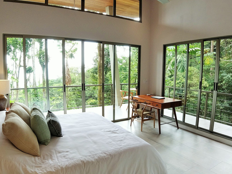 The living room and kitchen are open and spacious with glass accordion doors that bring the outdoors to you while providing easy access to the infinity-edge pool that is perfect for a swim or your next pool party. Each bedroom has an en-suite bathroom with an outdoor shower and each bedroom is air-conditioned and filled with light. Truly a modern new home that checks all the boxes. Although the home is located in a safe, high-end community above Uvita, the community is planning to add a gate soon with manned guardhouse for additional on-site protection of your investment. The home itself also includes a security and camera system for total peace of mind, including the ability to view the cameras remotely. One of the closets is equipped as a secure storage area with the option of adding a dehumidifier in order to protect your valuables.