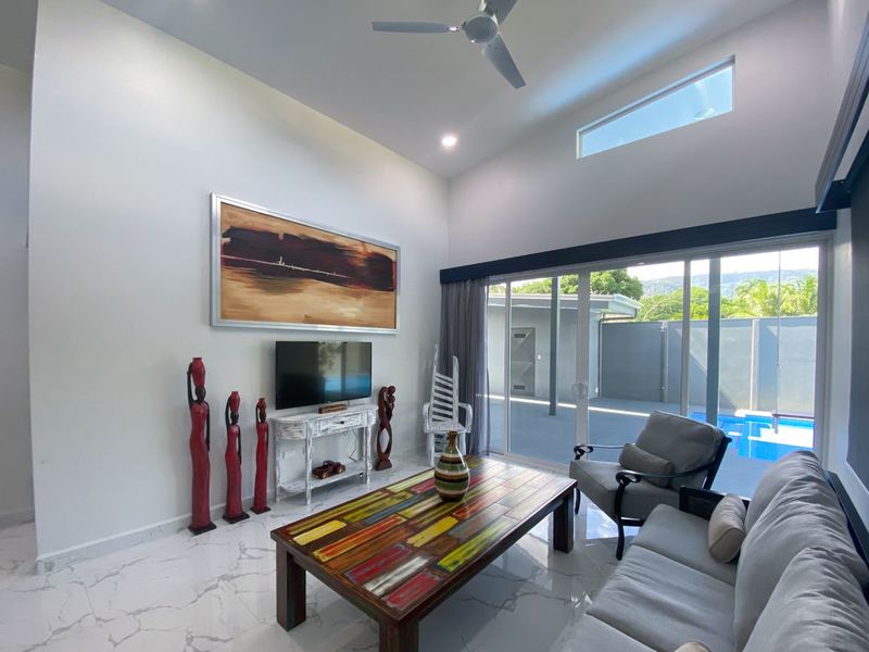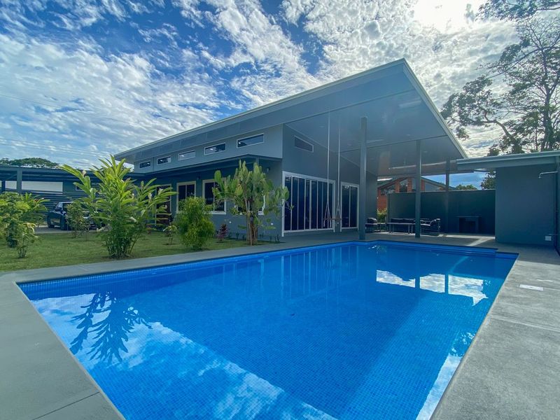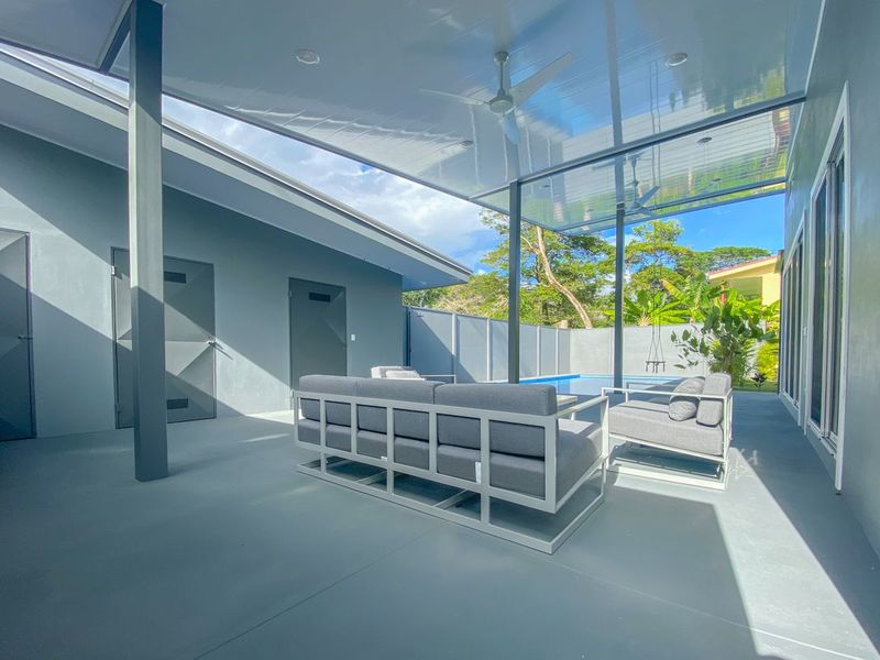 The outdoor spaces are equally as impressive as the home itself. The colorful landscaping and garden areas remind us of how lucky we are to live in a tropical paradise. The pool is very large and extremely tempting, and because your life is best lived outdoors, there is an outdoor living area provided for you as well. Also, to top it off, there is a storage bodega, a laundry room, and even an outdoor shower!