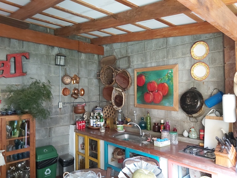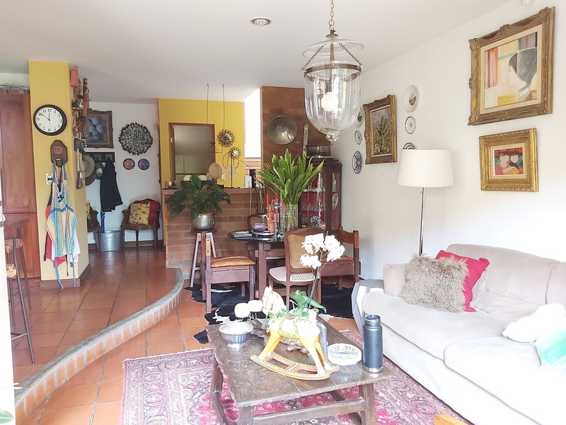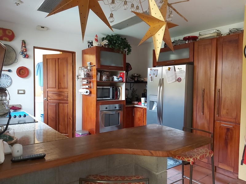 Sala comedor y cocina con muebles y desayunador. Terraza y Rancho BBQ.