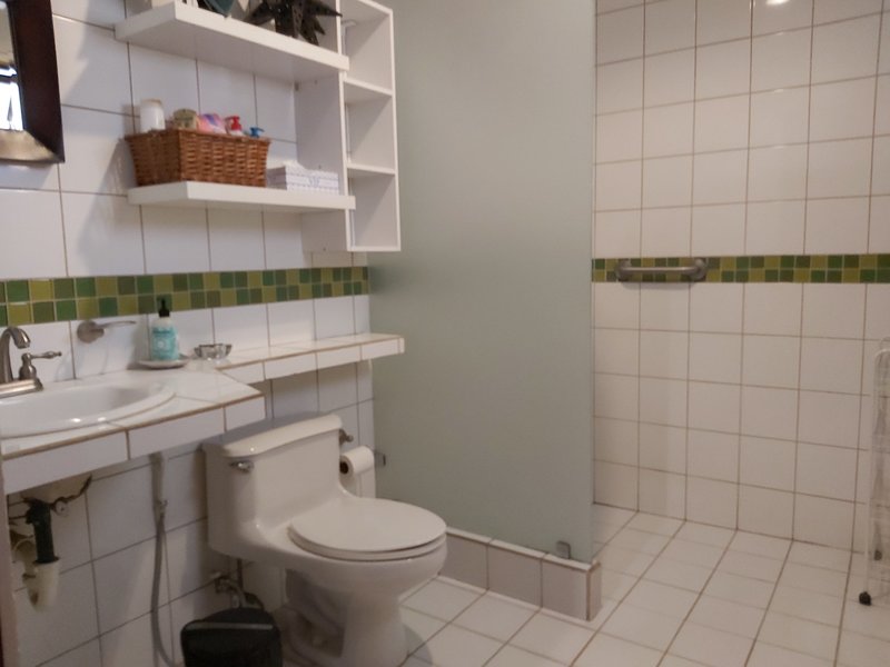 La casa en primera planta cuenta con: recibidor, amplia habitación con baño completo para personas mayores puerta amplia al ingreso y rampa en la ducha cero gradas.
