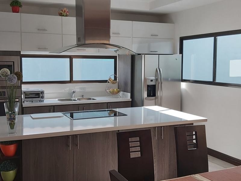 Casa Contemporánea en Curridabat First floor: Large room with double height, dining room, kitchen with Italian furniture and quartz top, island, oven tower, electric template and extractor included. Guest bathroom, bedroom with full bathroom, TV room, large office. Garden with synthetic grass. Garage for two cars, you can park a third in the retirement area. Second floor: Two secondary bedrooms with closet and full bathroom each, master bedroom with walking closet, full bathroom, balcony. TV room The house has natural lighting and ventilation, excellent quality finishes. The condominium has cobbled streets, underground electrification, 24/7 security and monitoring with cameras, access controlled by security- Quick Pass, electrified fence, social area (Club House), kids Club, BBQ area, gym, children's play, heated pool, tennis court, visitor parking, pet friendly, water treatment plant. The maintenance fee is 85,000 per month. Located in an area of high added value, near the main commercial and educational centers in the area.