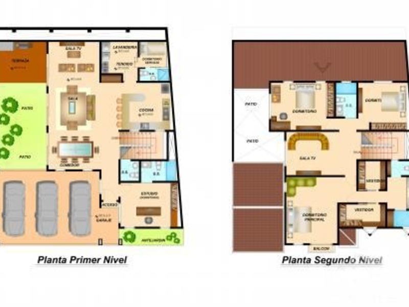 Second Floor: TV room, 3 bedrooms, the main one with a walk-in closet with a full bathroom, 2 secondary bedrooms with a closet sharing a full bathroom.