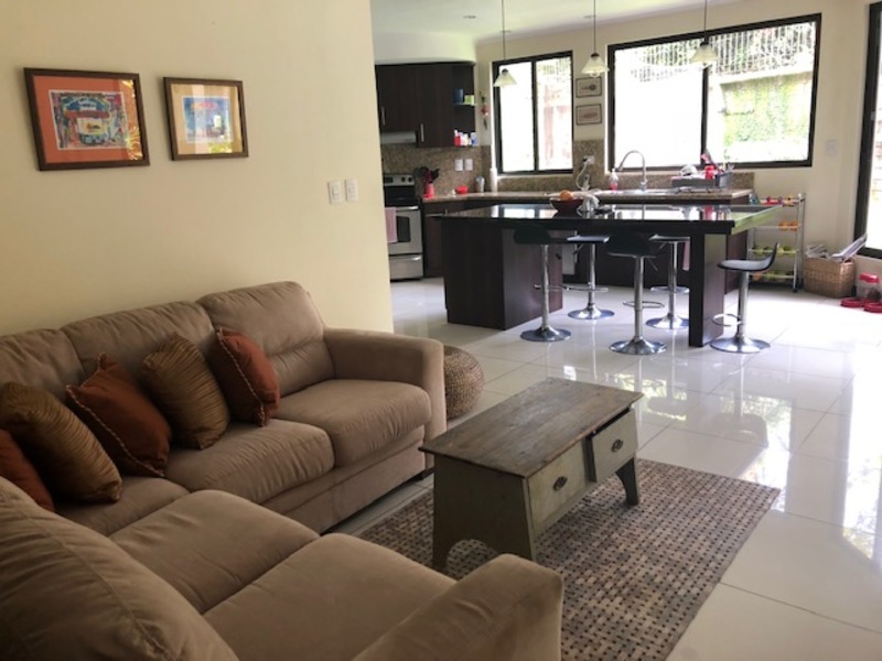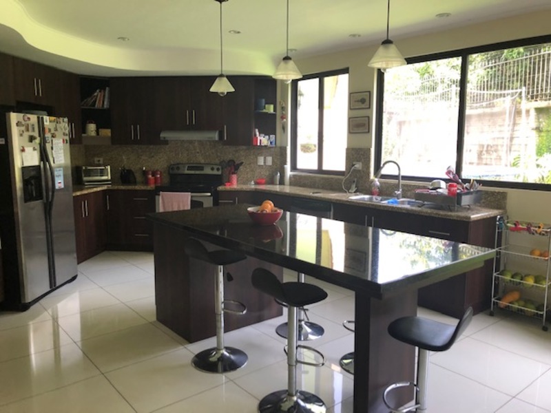 Hermosa casa de Dos Plantas en Condominio en Cipreses de Curridabat. This beautiful property is on two floors, very cozy, has very spacious spaces and luxury finishes. It is ideal for a large family who likes to do social activities as it has a large terrace and a good size garden. The distribution is as follows: on the first floor we find a nice hall next to an office which is equipped with modern furniture and a beautifully decorated guest bathroom. The kitchen is independent, with granite countertops and an island as a breakfast area as well as a good size pantry. The kitchen also has a room that works as a family room. The laundry room is also quite large and communicates with the utility room which has its private bathroom. It has access to the patio. The dining room is also independent and the living room has a nice bar that is incorporated into the social area through large windows. On the second floor we find a large TV room that opens onto a balcony, the master bedroom with access to the balcony as well, the bathroom and its walking closet. In addition, three secondary rooms which share a bathroom with a double sink and separate spaces. The garage is for two cars but outside it fits two to three cars and there is space to park on the street. The house is located in an exclusive condominium with a guardhouse and 24/7 security. It has green areas and a playground. Pets are allowed. The condominium fee is $ 400 per month.