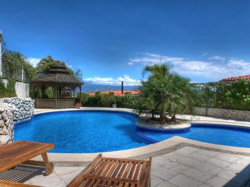 6 bedrooms, 5 bathrooms, large TV room, large living room, beautiful terrace, beautiful gardens.
