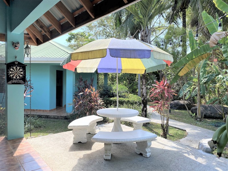 Toucans, hummingbirds, and butterflies are daily visitors to this garden paradise in the growing town of Ojochal. With almost a full acre of land in town this gated and fenced property offers privacy with the opportunity to enjoy life in Costa Rica with some income.
