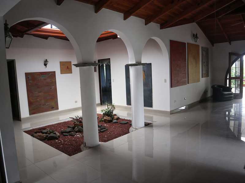 Beautiful open area house with a large elevated entertainment and recreation area with great mountain views. It has 4 bedrooms plus an office, kitchen and dining area and an open living room, 3 bathrooms plus laundry. There is also a 3 bedroom 1 bathroom house for the caretaker and another with 4 bedrooms, 2 bathrooms plus a 2 car garage used by the owner's son. In the property, each house has a separate gated entrance from the paved subdivision internal road. There is a permanent guard in the guard house at the entrance to the sub division. There is a large swimming pool that needs a little work and clean up.