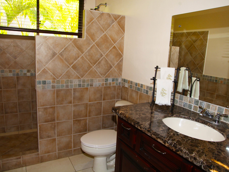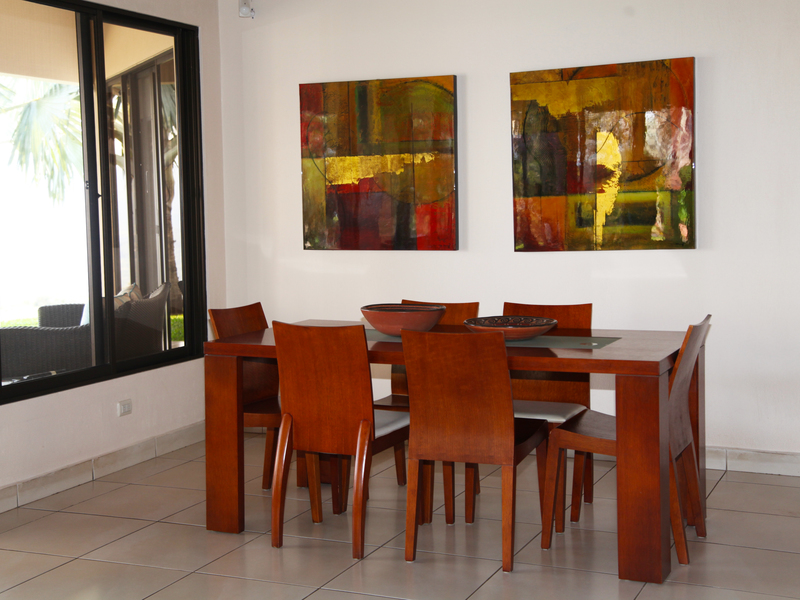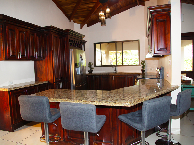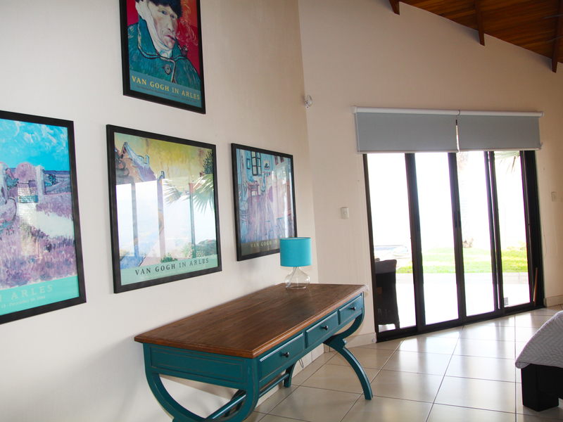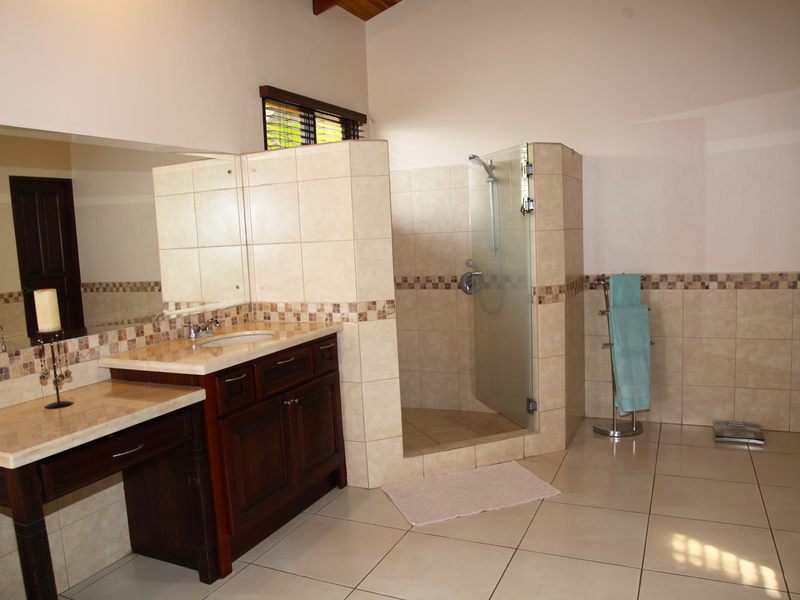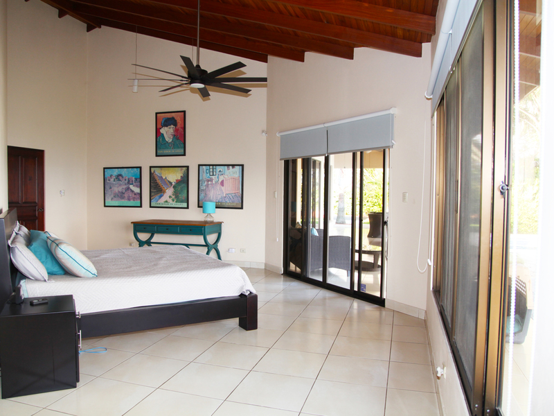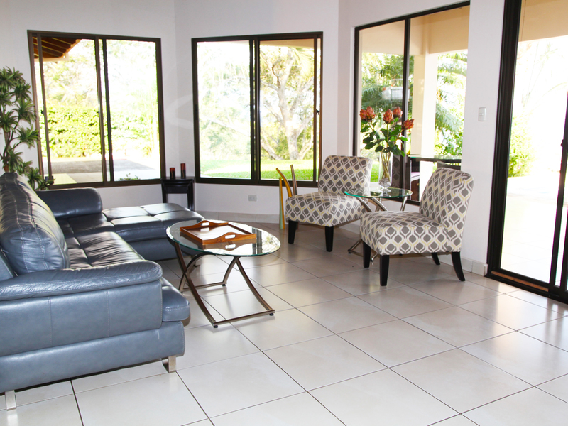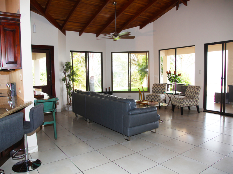 The living room flows seamlessly onto the great covered outside patio, a must in Costa Rica, where outside living space is as important as inside. From here there is direct access to the solar heated pool.