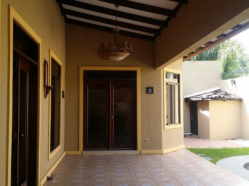 Beautiful two story home in Cariari. First floor: guest bathroom, dining room area, ample and very open living area with a small bar, kitchen, big roofed terrace, pool, big backyard and front garden, laundry room, maids quarters with bathroom and closet, garage for two cars. Second floor: 4 bedrooms, 3 bathrooms, two of the bedrooms are very big with walk-in closets and Jacuzzi tub in the bathroom, the other two bedrooms with wood closets and shared bathrooms with Jacuzzi tub. Alarm system and security 24/7.