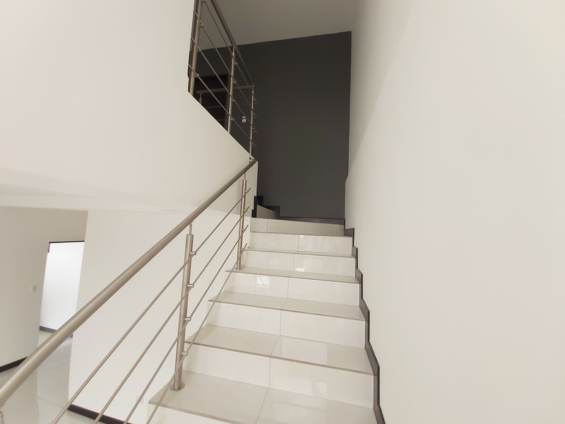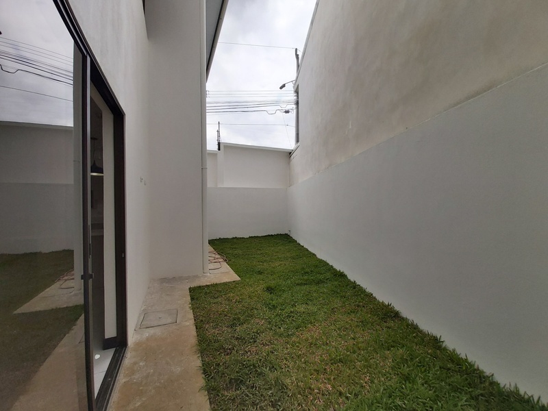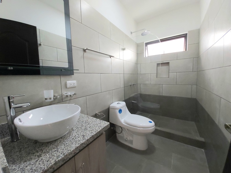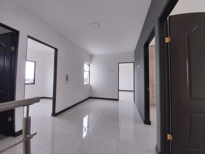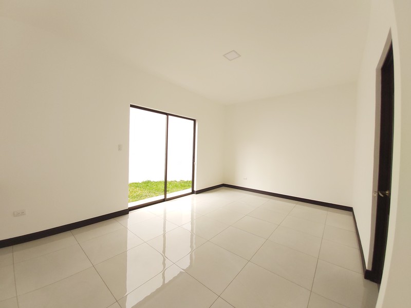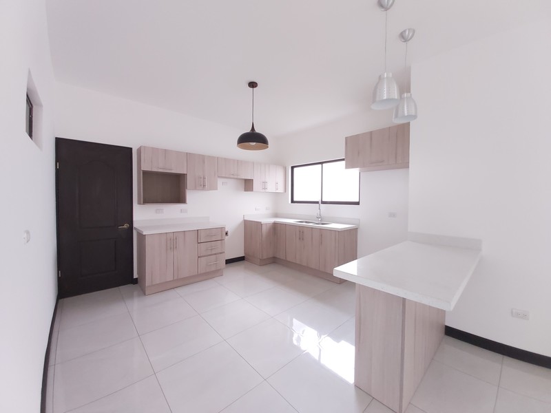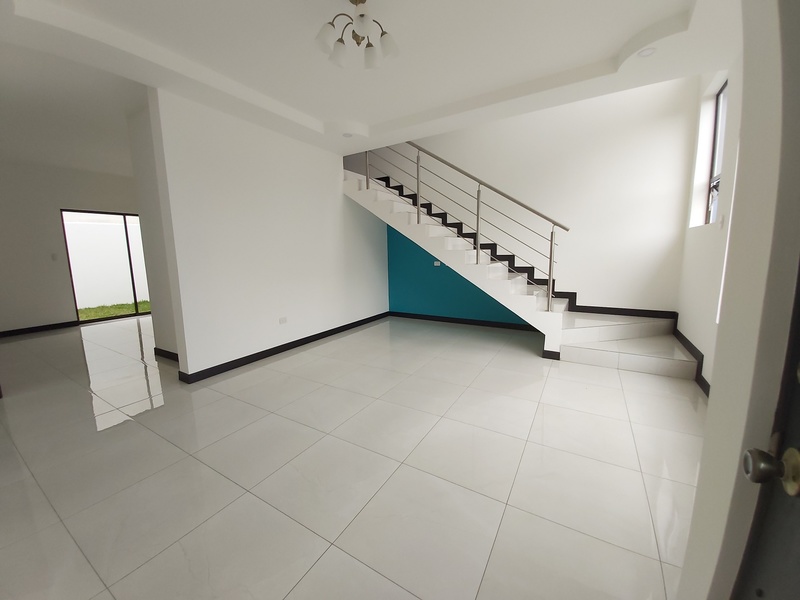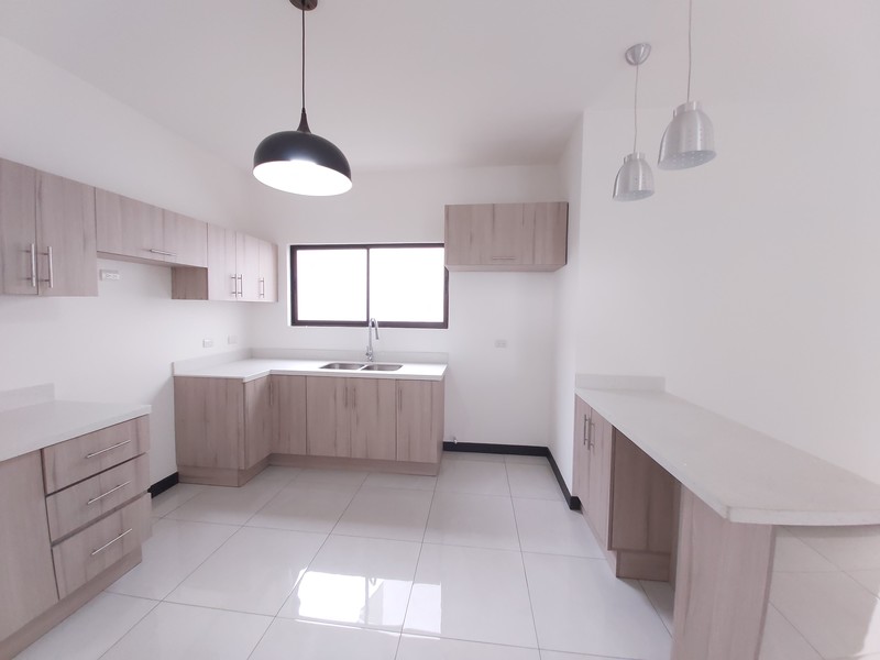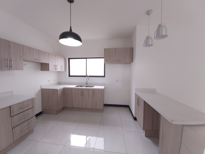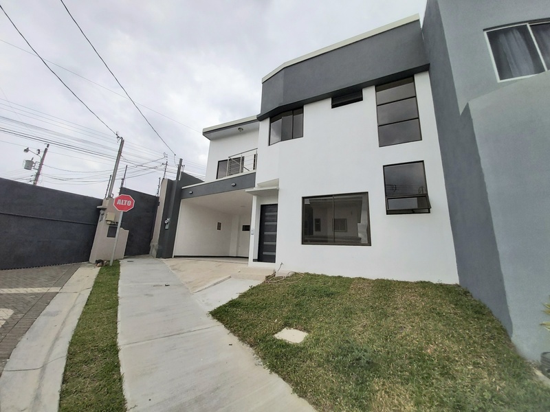 Casa de Dos plantas. La casa es estilo contemporáneo nueva y con finos acabados. Cuenta con sala, comedor y cocina integrados en espacio abierto cada uno con la sección que le corresponde. La cocina es amplia y cuenta con desayunador los muebles son en melamina hidrófuga con sobres en Cuarzo. La casa tiene área de pilas para lavadora y secadora por separado. Medio baño de visitas. Tres habitaciones la principal con amplio baño y espacioso Walk in closet y un balcon. Las otras dos habitaiones cuentan con closet en melamina y comparten un baño. Los muebles de los baños son en melamina con sobres de marmol. Tiene sala de oficina Espacio para dos carros.