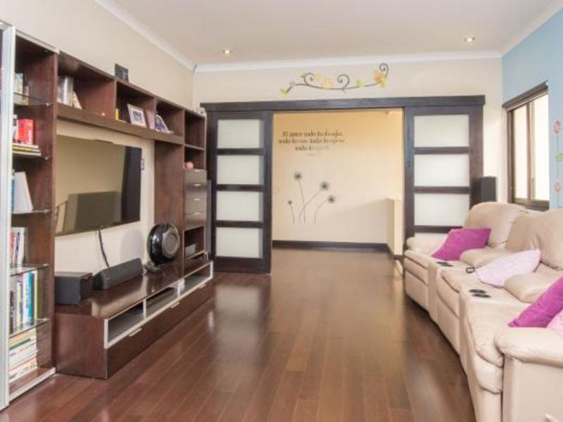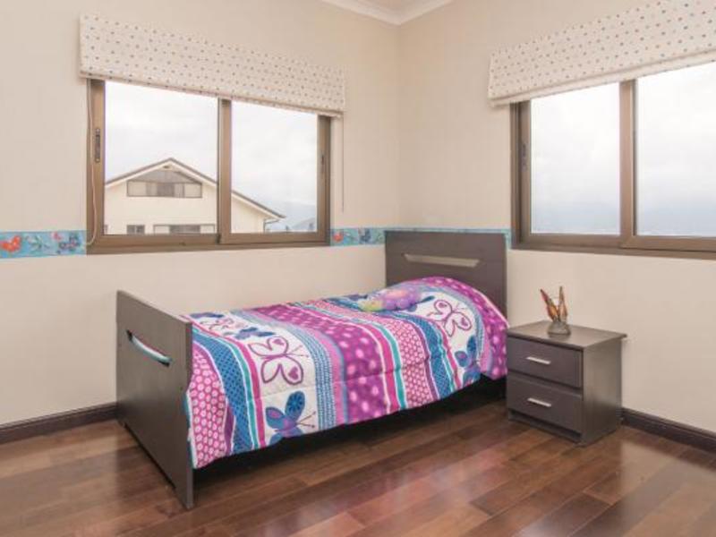 On the second floor, which is the private area of the house with three bedrooms. At the front of the staircase, two sliding doors made of wood and glass give way to the family TV room. At the end, there are the two secondary bedrooms. They share a bathroom and have beautiful views of the mountains and the garden. Private rooms have an office that can be used as a game room. The master bedroom is spacious and private, as it is separated from the secondary bedrooms and the TV room. The master bathroom is delicately designed with granite countertops and has 2 sinks that allow for a very comfortable sitting area.