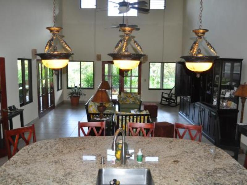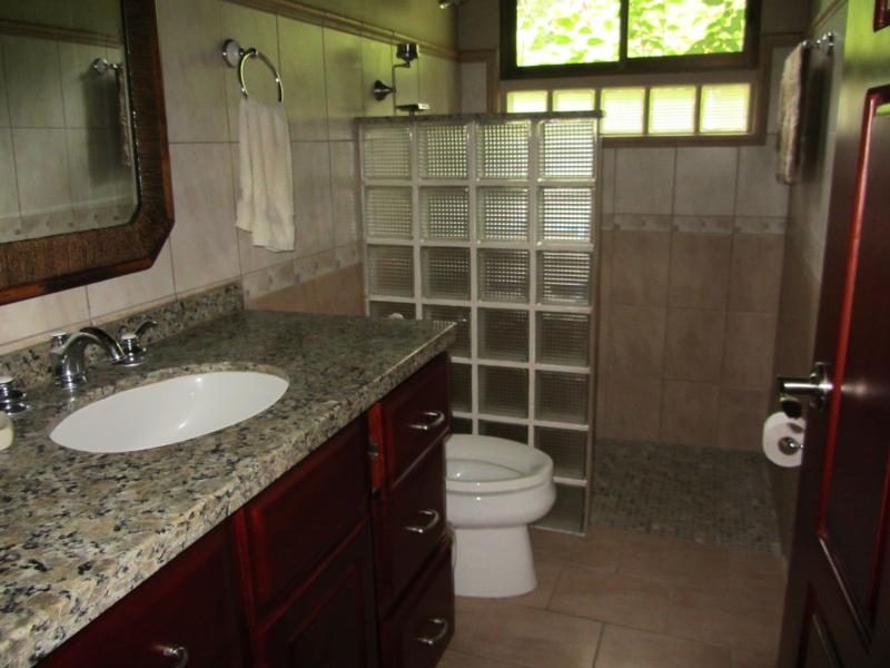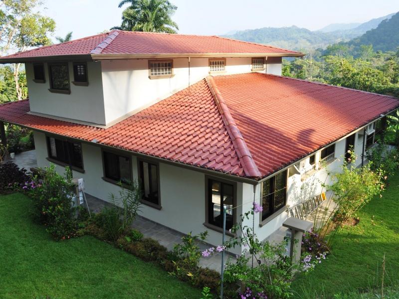 A five minute ride on a bumpy road brings you to iron gates with cornerstones that are topped with “pineapples”. This is truly a private haven that overflows with nature, everything from exotic birds to monkeys. The property is comprised of three separate parcels of land totaling 4.82 hectares (11.9 acres) that is surrounded by water called Quebradas or running streams. The length of the properties faces the Diamante Waterfalls and the terrain is overflowing with many different types of fruit and other edibles. There is a virgin rainforest at the top of the property that is backed by a preserve. There is ample room on each of the three parcels to build additional homes.
