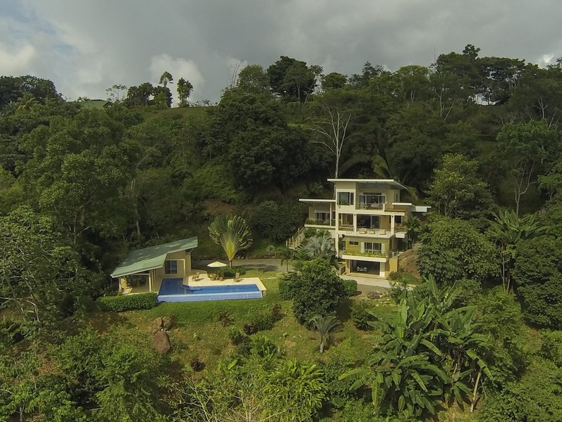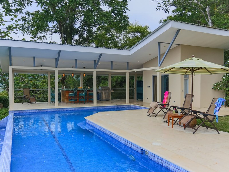 Casa Tangaroa is a gorgeous contemporary home to live in at any stage of your life, whether you are giving your children all the benefits of international living or you are retired and love to have guests. It was created to capture a panoramic view of the jungle and the Pacific Ocean with complete privacy but within the well established community of Lagunas just 18 minutes from Dominical’s world class surfing beach. At 1000 feet above sea level, it catches the breezes off the ocean during the day and the coolness of the mountains at night.