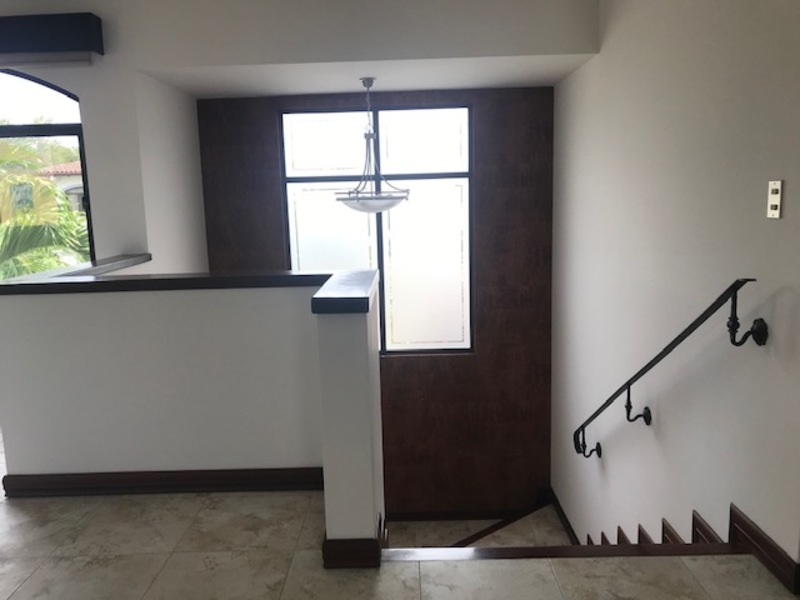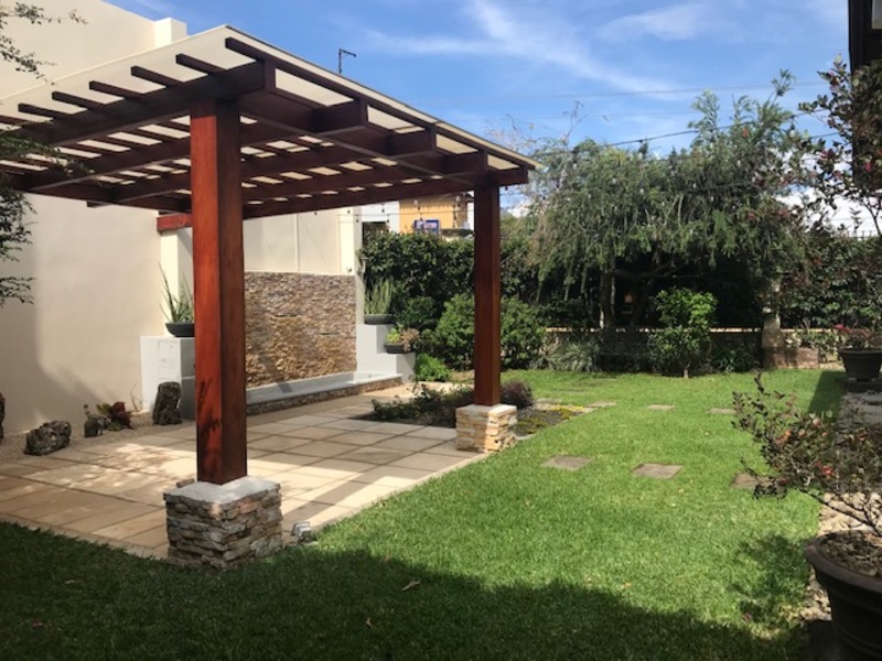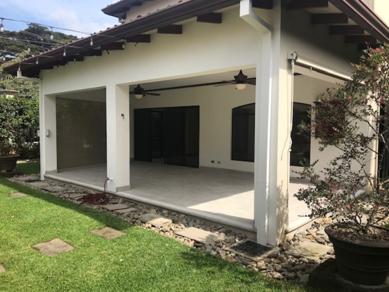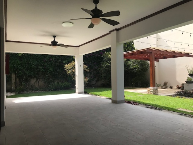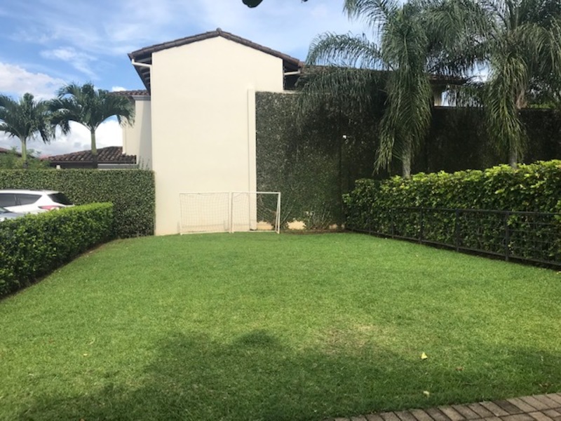 Hermosa Casa de Finos Acabados en Condominio en Lindora en Santa Ana. The house is on two floors and is in a condominium of few houses, has 24/7 security with controlled access. First floor: Lobby, guest bathroom, separate office, large dining room which connects to the covered terrace that in turn connects to the beautiful rear garden, where there is a BBQ ranch and a beautiful weeping water fountain. Nice large kitchen with Euromobilia-type furniture with granite countertops with breakfast bar and dining area, utility room with full bathroom, laundry room, covered garage for 2 vehicles, 2 more in an open space outside the garage. Large and beautiful gardens surround the property, it only has a neighbor on one side. Second floor: spacious stairs, large TV room, 4 bedrooms, the main one with a walk-in closet, air conditioning and a full bathroom with separate shower and Jacuzzi, a spacious guest room with air conditioning, closet and full bathroom, two secondary rooms with closet with closet sharing full bathroom. Common areas of the condominium: Beautiful heated pool, activity ranch, 5-a-side soccer field and play area for children. Maintenance fee included in the rental price, pets are allowed. High capital gain area, close to shopping centers, restaurants, entertainment venues and places of convenience.
