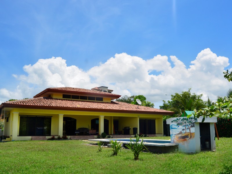 The home has plenty of space all around it, specially in the backyard, there's about 7,500 sq. ft. of room where only the refreshing pool and the Almendro trees sit. It's cleared for additional construction if desired.