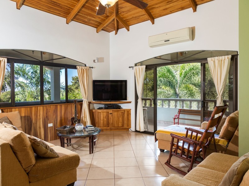 Located in the quiet beach community of Playa Junquillal, the home's main living space features beautiful vaulted ceilings; it is full of light. Terraces off of the family room and master suite are the perfect place to enjoy sunsets over the coast, offering wonderful "peek-a-boo" ocean views.