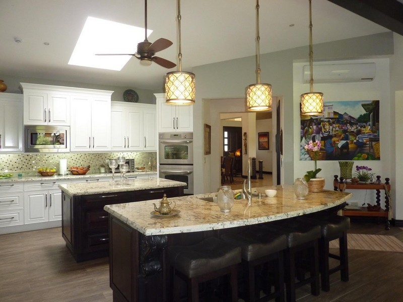 A DREAM KITCHEN WITH TWO ISLANDS AND TOP LINE BUILT IN DOUBLE OVEN AND FLAT COOK TOP. SIDE BY SIDE REFRIGERATOR, AN OVERHEAD SKYLIGHT LETS IN LIGHT ALL DAY. THE KITCHEN OVERLOOKS THE TV/ENTERTAINMENT ROOM. KITCHEN FEATURES EXOTIC GRANITE COUNTERS THROUGHOUT. LARGE WALK IN PANTRY HAS EXCEPTIONAL STORAGE SPACE.
