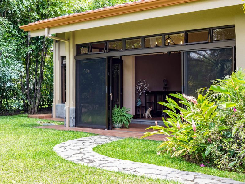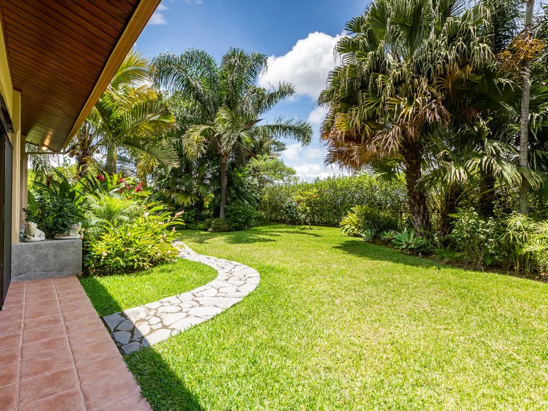 The beautiful home is fresh and cool everyday so there is no need for air conditioning. Enjoy a beautiful open design kitchen and breakfast nook with a dining room and living dining room combo. Very large bedrooms in the home, master suite with double sinks, tub, and shower, the 2 bedrooms with a bathroom to share. The front and back lawn and garden are kept in prestige conditions year-round. The home is within one hour of the beautiful Pacific beaches and 3 1/2 hrs of the crystal clear Caribbean Sea. The home is located in one of the top ten residential communities in all of Costa Rica. The neighborhood is full of features including a 9 hole golf course, clubhouse, a beautiful pool, tennis court, hiking and walking trails, and kids playgrounds. There is an International school 100 meters from the residential. The home is next to a small (wet season) pond located in the back yard. The neighborhood is very dog friendly for morning or afternoon walks. The home is two kilometers from a major food store which is open 7 days /wk. There is 24/7 security and multiple guards riding through the neighborhood day and night. The national health service (CAJA) has a very good clinic in La Guácima. We are within 15 minutes of Major hospitals, a large shopping mall and a host of other outlets. The Viva Center hosts international entertainment as well as a formula auto race track within 10 minutes of La Guácima.”