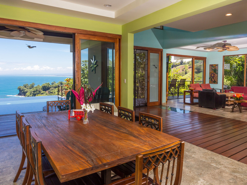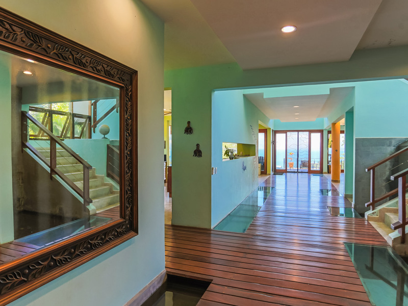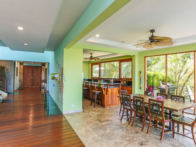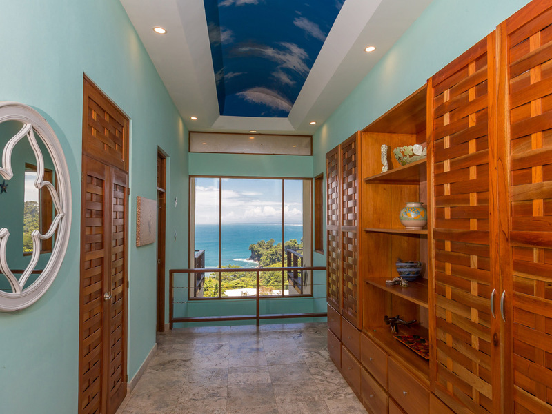 The home is nestled in the middle of the last remaining locally-owned farm in Manuel Antonio area and creates a blend of luxury and authenticity which is almost impossible to find. This property is one of the most spectacular ocean-front properties on the Pacific Coast. Picturesque hills lined with pasture and a few cattle roaming roll down to lush tropical rainforest with beaches below. You enter the home through the oversized tropical hardwood doors and from the moment you open the doors you are overwhelmed by the views and architecture.