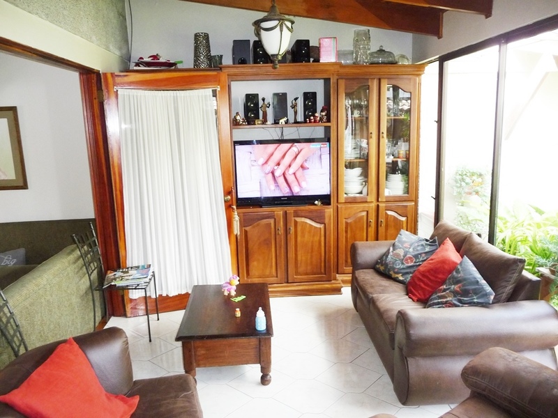 Casa de Dos Plantas en Lourdes de Montes de Oca. First Floor: covered garage with electric gate for 2 cars, hall, large living room, dining room, covered and closed terrace connected to the large back garden, BBQ ranch. Integral kitchen with wooden furniture and granite countertops, laundry area, bedroom with closet, full bathroom, garden in front of the house. Second Floor: TV room, office, master bedroom with large closet and full bathroom, 2 secondary bedrooms with closet sharing full bathroom. 24/7 street guard security, 25,000 colones are paid per month, pets are accepted. Excellent location near universities, colleges, public transport and commerce.