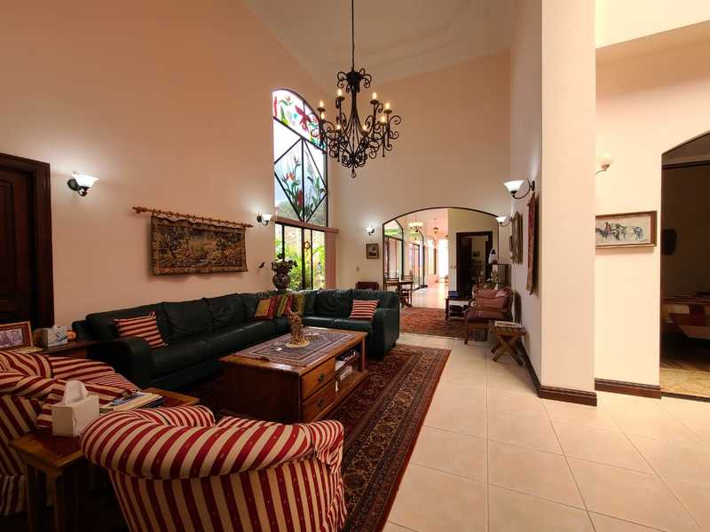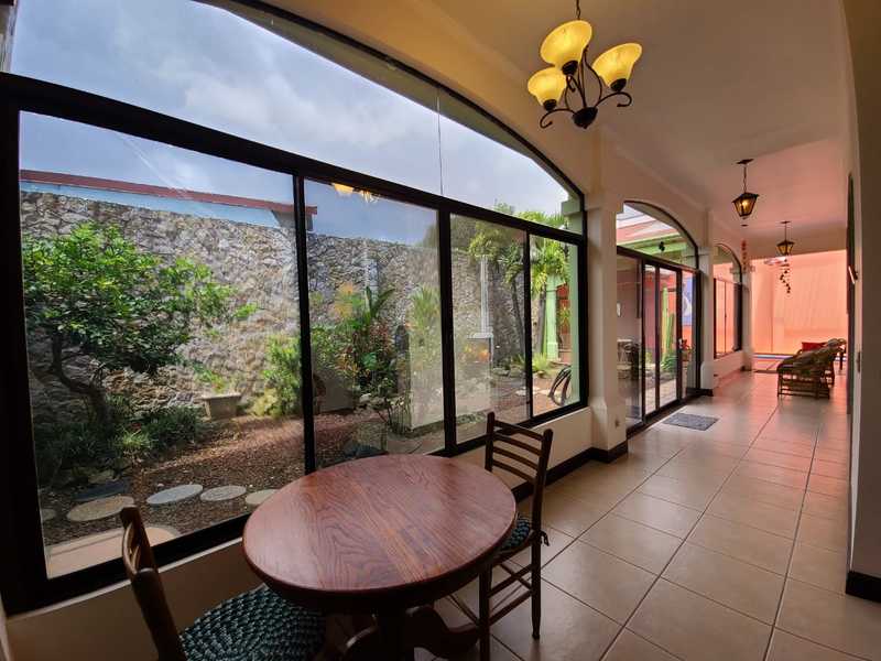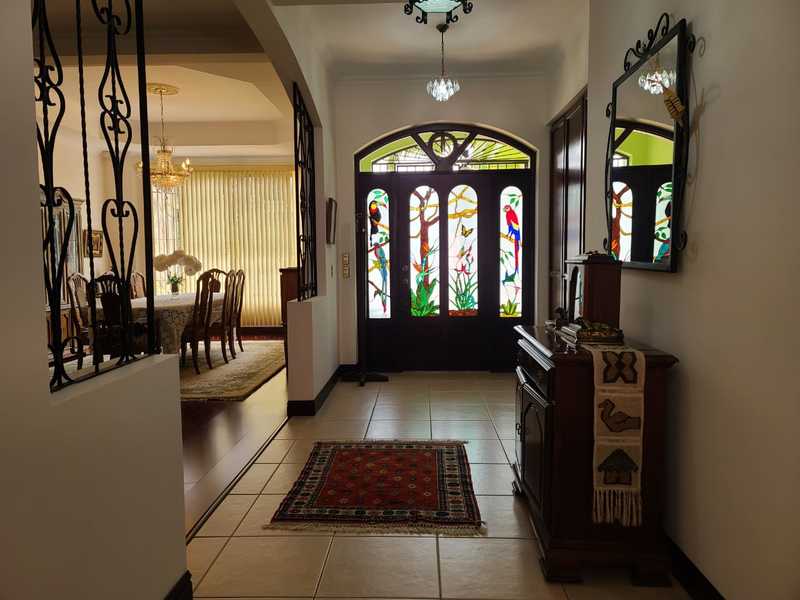 This beautiful piece of art it's located in San Vicente de Moravia, at just 150 mts from club la Guaria. Surrounded by supermarkets within a mile or so. The home's U-shaped glassed-in side patio and three skylights made the home open and well-lighted; stained glass front door with four stained-glass panels; and a large stained glass window above the main living room. The house has some special features, such as, pump for heating the pool and jacuzzi, cedar wood used for doors and trim throughout the house, a significant number of closed built-in cupboards and closets throughout the house and garage. There is also a maid's quarters. The house is built of cinder block, two stories in the front part and one-level in the rear of the house, high ceilings in all rooms, and two story level in the living room which makes it look stylish, the doors are extra-wide. It has a 2 internal parking and room for 2 more in the external area. There are 21 rooftop sun panels which the electricity company monitors for electricity generated and reimburses for energy not used. This house is in an extremely quiet neighborhood, away from traffic and very friendly neighbors. As an added bonus, the price includes the furniture too!