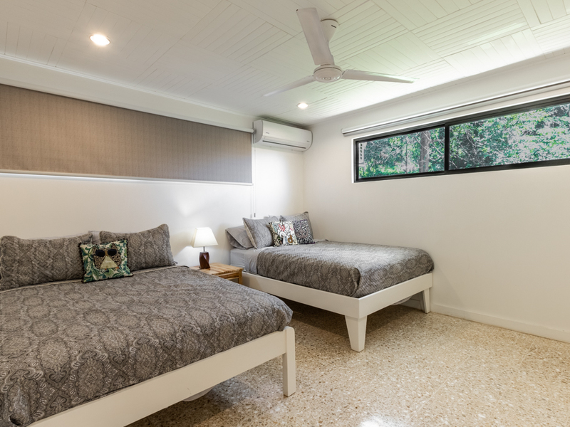 The home consists of three untis and a pool. The upper-level ocean view has two bedrooms and one bathroom along with a large covered terrace that looks out through the trees at the ocean. On the lower level, there are two one bedrooms and one bathroom unit. It a great way to enjoy your home while creating additional rental income.