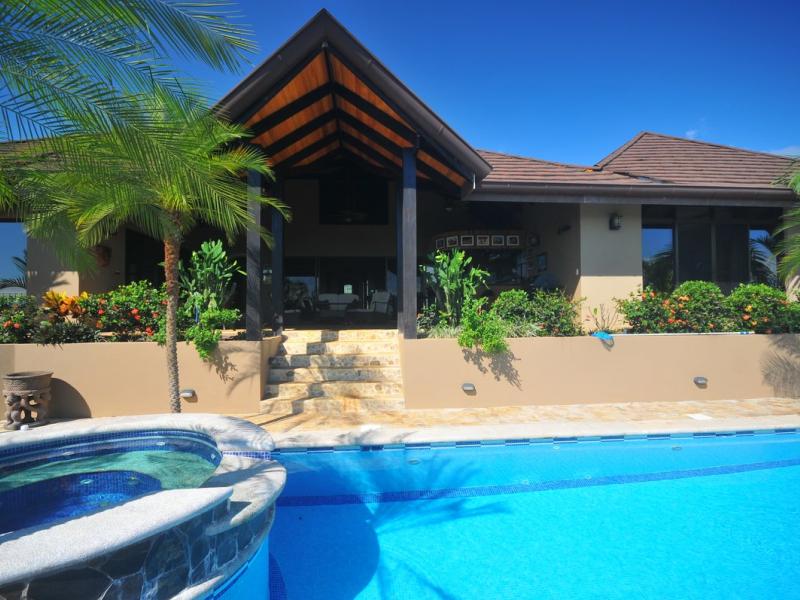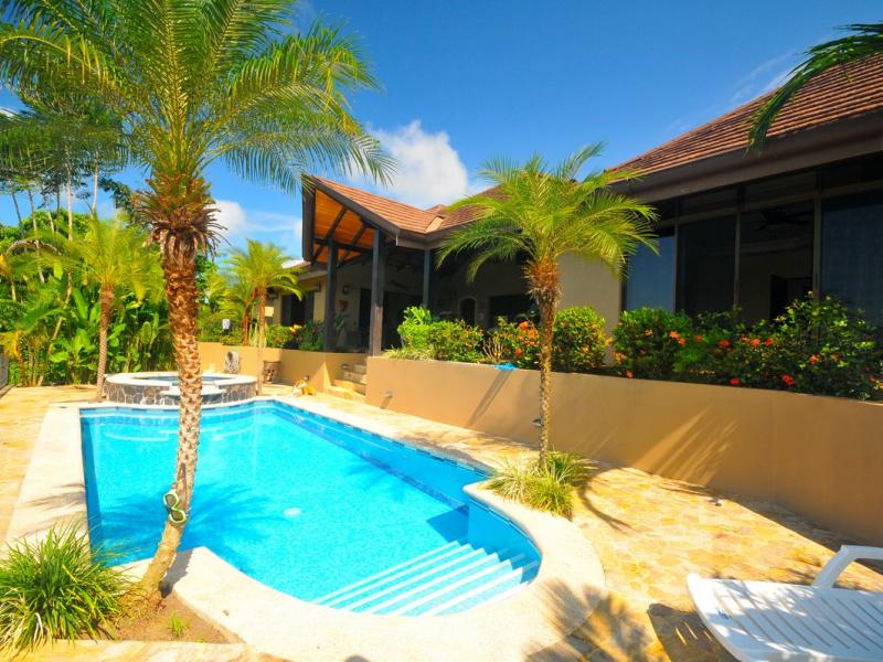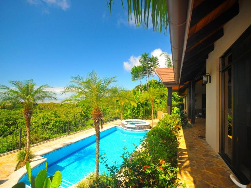 Sporting the personality and charm of southern Costa Rica, this three bedroom ocean view residence with the extending forever view of the Pacific is one of only residences walking distance to many restaurants the amazing community of Ojochal. Originally built in 2010, this open spaced-architectural style home has been well preserved, it is a picture perfect example of modern luxury and comfort; the residence was crafted and owned by local and well known for his attention to details builder. This beach house touts 3200 sq ft of living, with separate work out area; main house accommodations offer 4 bedrooms and 5.5 baths, gourmet kitchen with open flow, formal dining for 10, master suite with private balcony and lounging and expansive views, as well as unrivaled privacy within the jungle atmosphere. Heated hot tub: Electric gated entrance and framed windows; vaulted ceilings with exposed wooden rafters; ceramic flooring and marble countertops. Entertaining is well suited with large covered outside living area: full bar with 6 bars seats that is steps away from the amazing pool. Oversized TV room that connects to the outside living space and garage parking for 2 is also of note, among a coastal landscape spanning an estimated 2,937 sq meter lot. Established in the 2010, this home offers residents the neighborhood ambiance of a seaside resort, with the privacy of a secluded jungle resort.