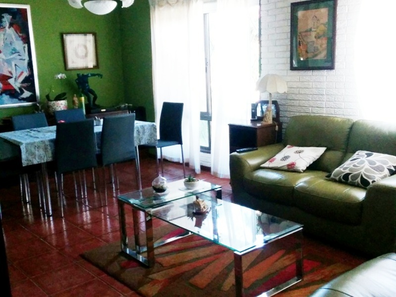 Casa de 2 Plantas en Pavas, San Jose. Description First floor: living room, dining room, kitchen with pantry, laundry room, large study-workshop, office, two full bathrooms, 2 bedrooms, backyard, storage room for tools and covered garage for two vehicles. Second floor: it has two bedrooms, a large room (TV room and library), a nice terrace, deck-greenhouse, a full bathroom and a balcony to the front. Front garden and backyard on the first level. Irrigation by micro aspersion in front garden and deck-greenhouse Very good natural lighting, very good finishes and security. Quiet urbanization with easy access to commercial centers, public and private services, etc. ADT security system Construction on two floors. First level walls in reinforced concrete and decorated. Metal frames, bronze aluminum windows with fixed and sliding glass Second level walls metallic structure, DensGlass and Gypsum type cladding Covered with corrugated sheets of painted galvanized iron. Double leaf aluminum automatic gate First level mosaic floors for common areas and floating floors in rooms Floating floors on the second level and mosaic in bathroom, terrace and balcony 110/220 volt piped electrical system. Includes solar panel system authorized by CNFL