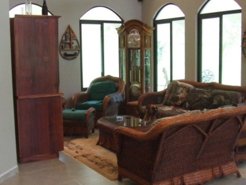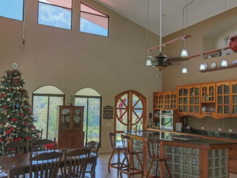 This beautiful award winning Steve Bliss Design country estate is back on the market at a reduced price. Large 3 bedrooms and 2 baths plus a bonus room measuring 12 feet by 9 feet, this house boasts over 7000 Sq FT under roof. There are expansive decks surrounding the house for a full view of the rain forest. Huge open kitchen with granite counter tops, vaulted ceilings, pantry, work room, laundry facility, Huge walk in closet, 3 car covered parking, jacuzzi tub and full basement are a few of the amenities of this gorgeous house. The property itself sits on 6.44 hectares or about 16 acres with a year round water fall on the property. Lots of wildlife, and 2 horses accompany this sale. This is a dream house for anyone wanting the close proximity of Quepos and Manuel Antonio but require more land and privacy, It is only 5 miles from Quepos and 5 miles off the main highway. There is a private gate and a caretaker living on the property. One of the best secrets of this particular property is the owner planted over 500 Hardwood Trees