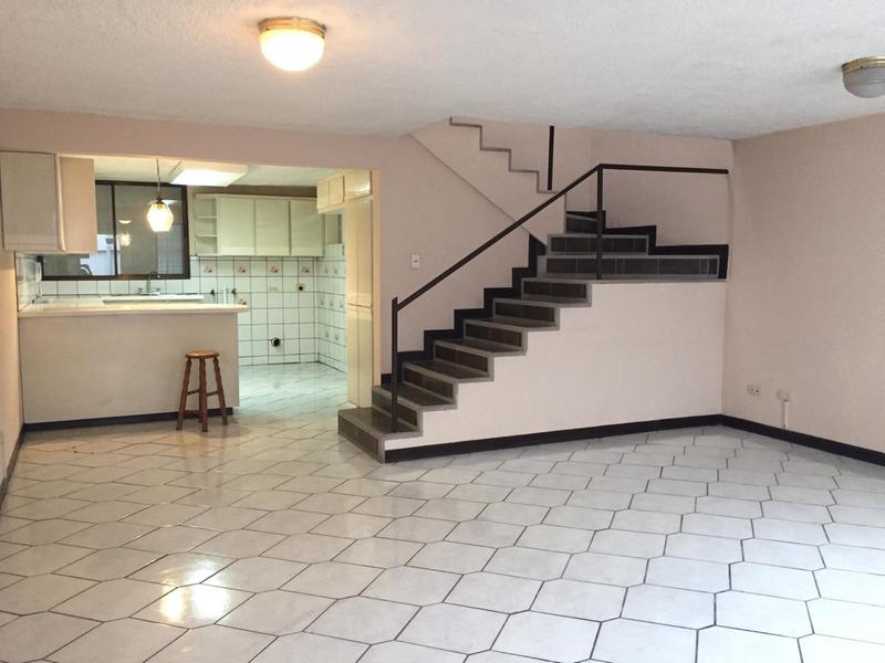 There are two units, each apartment is on two levels in the first we find a spacious dining room with an integrated kitchen, the furniture is melamine. There is also a small room with a full bathroom. On the second level is the main room with its private bathroom and large closet. Both apartments share seven parking lots. The location is excellent as it is close to downtown San José Each apartment rents $ 750 per month