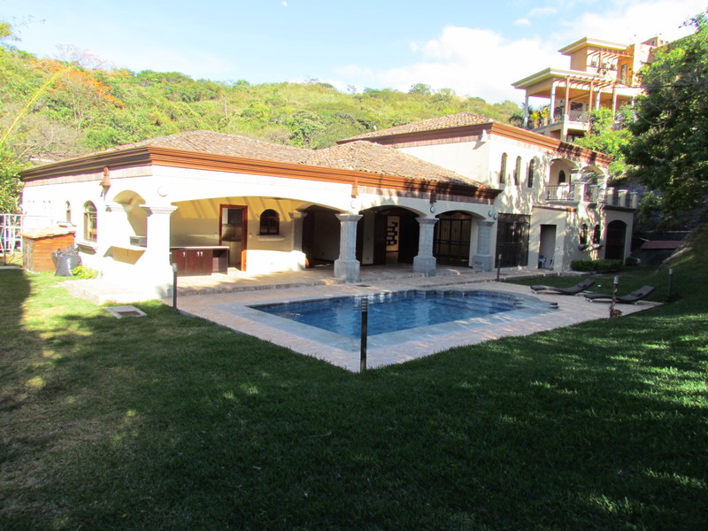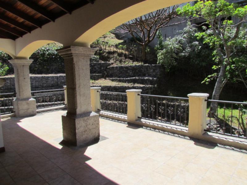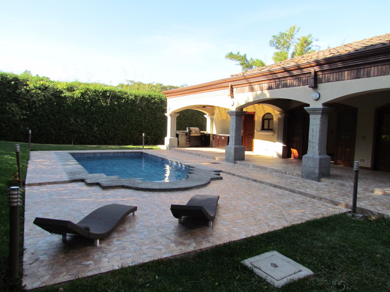 Esta casa de arquitectura colonial está situada en uno de los más codiciados condominios privados de Santa Ana - Escazú. Este condominio de clase bien alta ofrece: seguridad las 24 horas, cámaras de vigilancia, guardias internos, un casa club con servicio completo, piscina grande para adultos y otra para niños, las dos climatizadas, área de gimnasio, canchas de tenis, cancha de baloncesto, juegos infantiles, senderos y zonas verdes por todas partes. Esta casa fue construida con acabados de alta calidad, combinando la vida moderna con la elegancia y sofisticación. Esta casa ofrece un plano maestro que divide las áreas de servicio en un lado de la casa, las grandes áreas sociales en el centro de la casa, conectándolas a la terraza, area de BBQ techada, piscina privada y jardines y la sección de habitaciones en el otro lado de la casa. Grandes ventanales permiten la luz natural en el interior de la casa. El dormitorio principal con su área de visita y de oficina, amplio walk-in closet, un baño principal con bañera de hidromasaje, ducha y dos lavados, y una amplia terraza con vistas a la piscina, los jardines y las montañas, esta situada en el segunda planta para mas privacidad. Luego, en el nivel inferior de la casa, usted encontrará dos amplios dormitorios ambos con walk-in closets y un baño completo que comparten, Otro dormitorio tipo suite, casi tan grande como el dormitorio principal, con su baño y walk-in closet, para un total de 4 habitaciones, 3 baños completos y 2 medios baños, Sala de TV, amplio salón y comedor, cocina moderna, sala familiar, terraza cubierta y patio, piscina, cuarto de servicio con baño, cuarto de pilas y un garaje para dos coches y 6 más en el driveway. La casa esta recién remodelada. La propiedad tiene unas vistas estupendas de la ciudad y está rodeada de hermosos árboles y jardines.