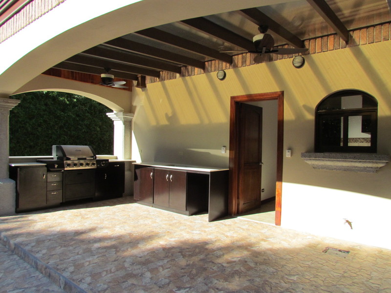 This great colonial architecture home is located in one of the most desirable private gated communities of Santa Ana - Escazú. This private up-scale gated community offers: 24 hour security, camera surveillance, internal guards on duty, a full service club house, a large heated adult’s swimming pool, heated Kid’s swimming pool, gym area, tennis courts, basket ball court, kid’s playground, walking trails and green areas all over. This house was built with high quality finishes, blending modern living with elegance and sophistication. This great house offers la split master plan with the service areas on one side of the house, the large social areas in the middle of the house and connected to the terrace, covered BBQ area, private pool and gardens and the bedrooms section on the other side of the house. Large windows allow for natural light throughout the interior of the house. The master bedroom with its sitting and office area, ample walk-in closet, a master bath with Jacuzzi tub, shower and two lavatories, and an ample terrace with views to the pool, gardens and the mountains, is very privately set up on the second floor. Then, in the lower level of the house, you’ll find two ample bedrooms both with walk-in closets, share a full bathroom; Another bedroom SUITE, almost as big as the master bedroom, with its own bathroom and walk-in closet, for a total of 4 bedrooms, 3 full bathrooms, 2 half bathrooms, TV Room, spacious living and dining room areas, modern kitchen, a family room, covered terrace and patio; maid's room and laundry room and a garage for two cars plus 6 more in the driveway. The House has just been remodeled. The property has great views of the city and is surrounded by beautiful trees and gardens.