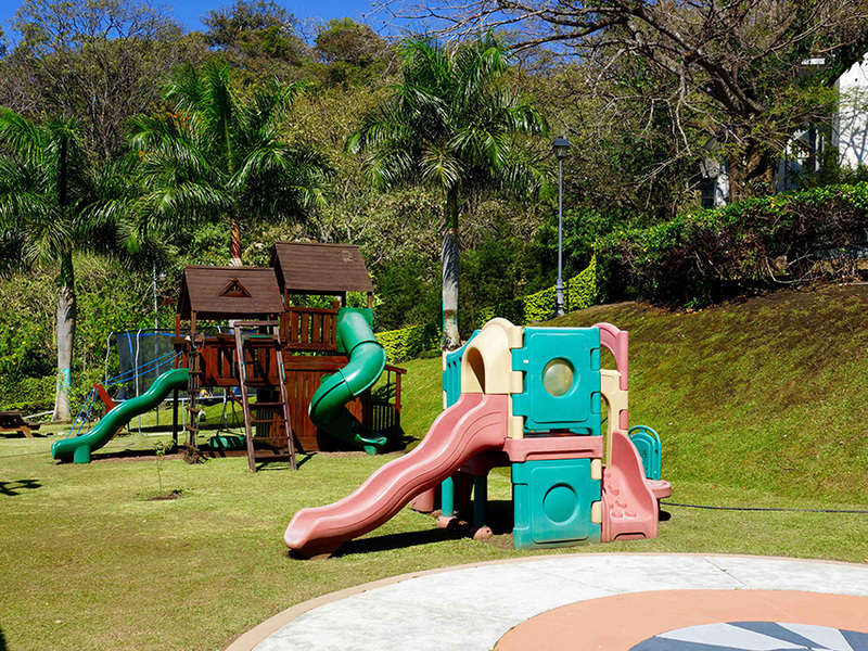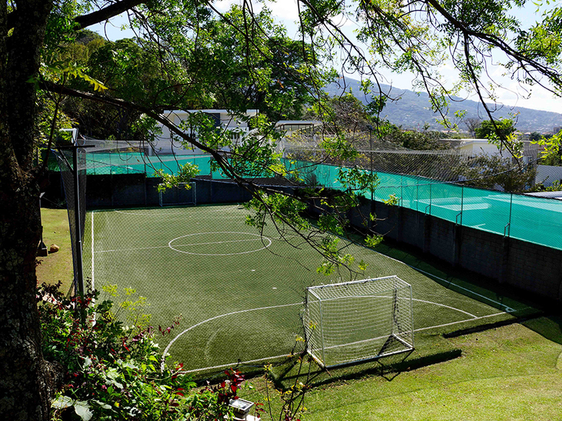 • Amplia entrada donde pueden estacionar hasta 4 autos, además del garaje cubierto para 2 autos. La propiedad tiene áreas verdes planas, característica única en este condominio, para disfrutar en la piscina y un enorme gimnasio o sala de juegos abierto.