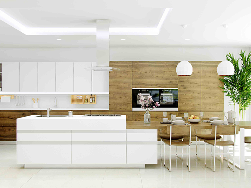 • The large kitchen incorporates a central kitchen island, breakfast area perfect for a family up to 6, details include top of the line custom made cabinets, quartz countertops, fine porcelanato floors and ample custom made independent pantry.