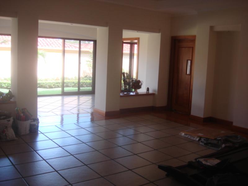 Spacious and comfortable home in gated community of Lindora, steps away from shopping centers, business parks and the Pacific Coast highway. The home is sitting ion an 825 sq. m lot and has 400 sq. m of construction. It features: 3 large bedrooms, 3.5 bathrooms, Office, TV room, Large size Kitchen with granite counter tops, breakfast area, pantry, attic and storage areas, maid’s bedroom and bathroom; Porcelain and hard Wood floors; large front and back gardens; 2 car garage and space for 6 more cars on its paved driveway.