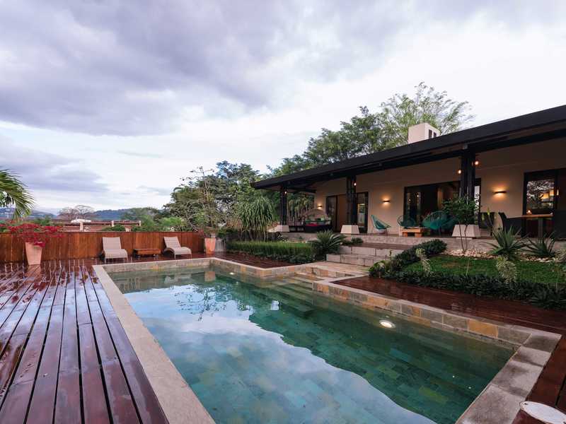 Este espacioso y privado oasis con piscina está en un tranquilo barrio cerca de Santa Ana Central, a 5 minutos del Forum I y de la autopista y a 10 minutos de Escazú. La casa tiene un fantástico y contemporáneo diseño que muestra piedra natural, madera y finos acabados. La cocina está recientemente remodelada y totalmente equipada; mientras que está abierta al comedor, la sala y la terraza que bordea la piscina. La suite principal está a un lado de la casa y también se abre a la terraza del lado de la piscina. Dos de los dormitorios secundarios, cada uno con su propio baño, se encuentran al otro lado de la casa con vistas a los árboles. El cuarto dormitorio es muy espacioso y se encuentra en el segundo piso.