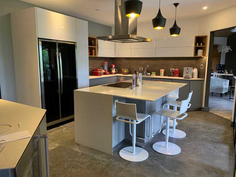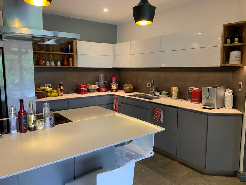 This spacious and private oasis with a pool is in a quiet neighborhood close to Santa Ana Central, 5 minutes to Forum I and the highway and 10 minutes to Escazú. The house has a fantastic, contemporary design that showcases natural stone, wood and fine finishes. The kitchen is recently remodeled and fully equipped; while open to the dining area, living room and the terrace that borders the pool. The master suite is on one side of the house and also opens onto the pool side terrace. Two of the secondary bedrooms, each with their own bathroom, are located on the other side of the house with views of the trees. The fourth bedroom is very spacious and is located on the second floor.