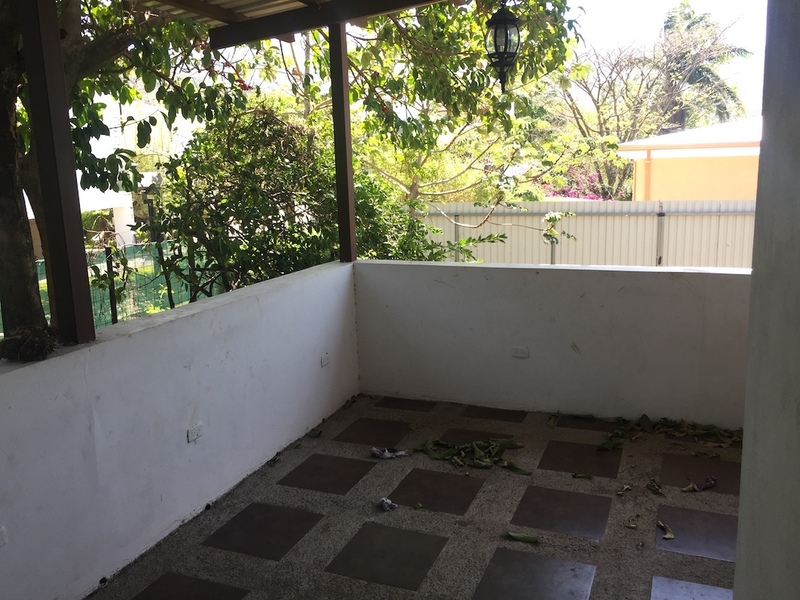 En la parte trasera de la casa hay una amplia terraza cubierta con vistas al jardín trasero, un patio muy grande que da a un jardín con árboles frutales, mangos, limones, mandarinas, ....