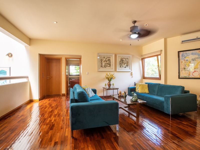 This elegant and spacious home in Santa Ana is in the heart of Lindora, in the very family-oriented community of Hacienda Lindora with 33 high-end homes and excellent proximity to the very best schools, restaurants, stores, and office complexes. Owners enjoy the controlled access, security, pool, lighted tennis courts, clubhouse, and access to the Radial Santa Ana and the road to Valle del Sol providing alternative routes throughout the area.