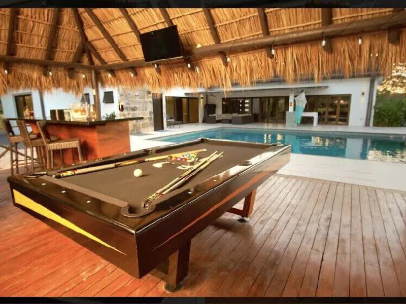 The home has 4 bedrooms, 3 bathrooms, including two jack-and-jill bathrooms, large pool, separate dining room, master suite, a gourmet kitchen, air conditioning, and plenty of space for entertaining! The pool area has a pavilion and a large covered patio. There is also an outdoor shower!