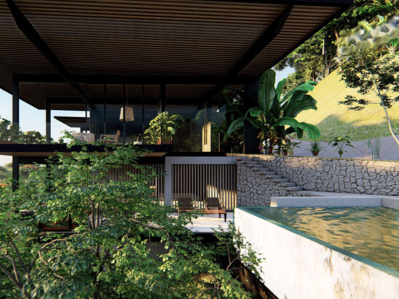 Elegantly placed on the slopes of Phase 2, this natural modern home spreads out to take in views of Playa Grande, Las Baulas Marine Sanctuary and sunsets over Playa Tamarindo.