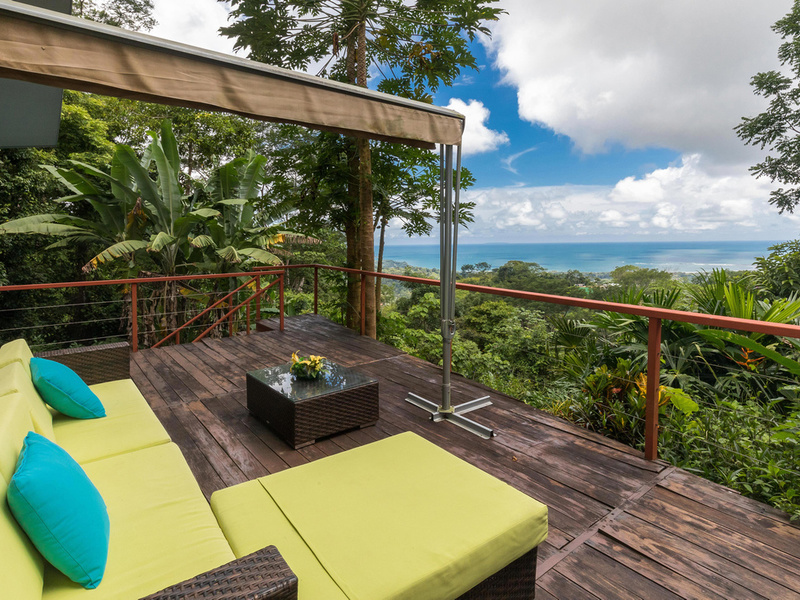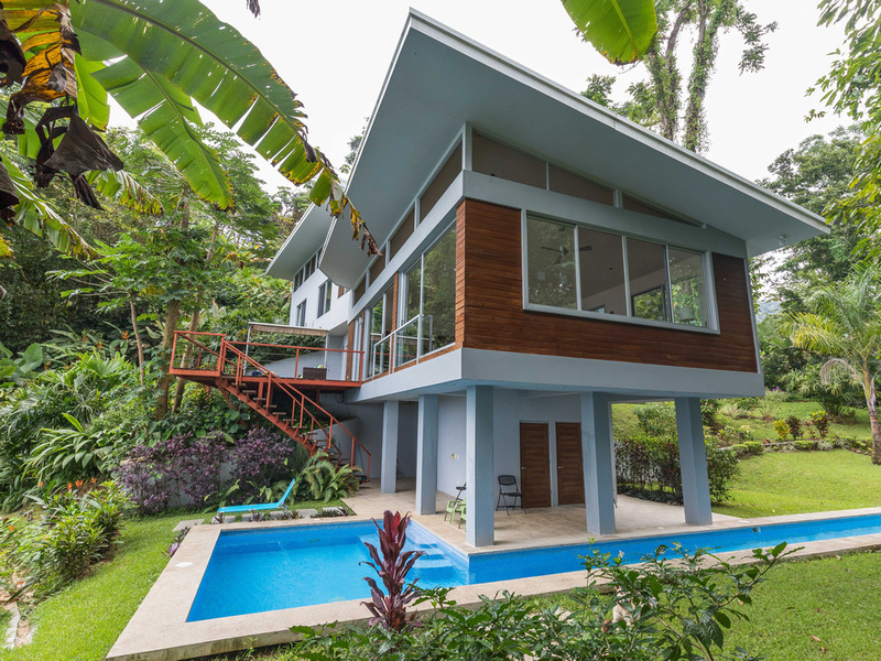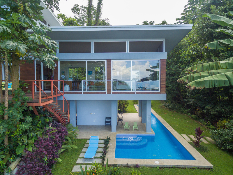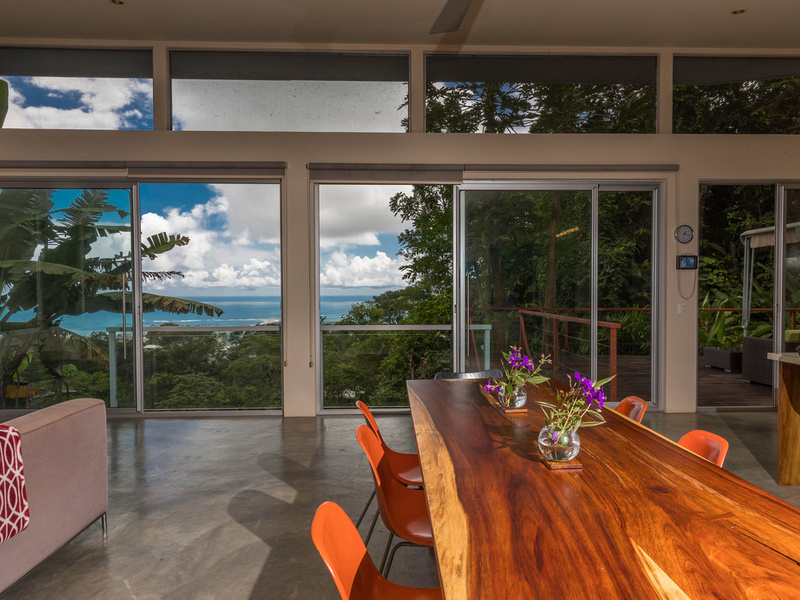 Casa Cocobolo is a luxurious four-bedroom "jungle modern" house designed to maximize the panoramic views of tropical jungle, sea, and sky. Set in the hills directly above the center of Uvita, the house offers not only dramatic views of the Whale's Tail, Caño Island, and Isla Ballena but also wonderful non-stop breezes that make the extra expense of air conditioning unnecessary. Located conveniently close to the amenities of town, however in a blissfully peaceful and private setting, surrounded by trees, tropical flowering plants, and abundant wildlife.